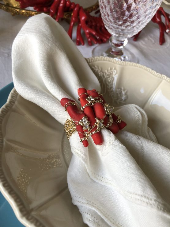 Be the first to review “SET OF 6 coral rhinestones napkin rings 24 kt gold finish”