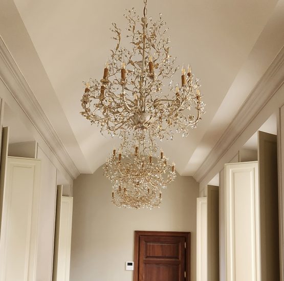 Be the first to review “10 lights chandelier in wrought iron with clear Bohemian crystal white gold”