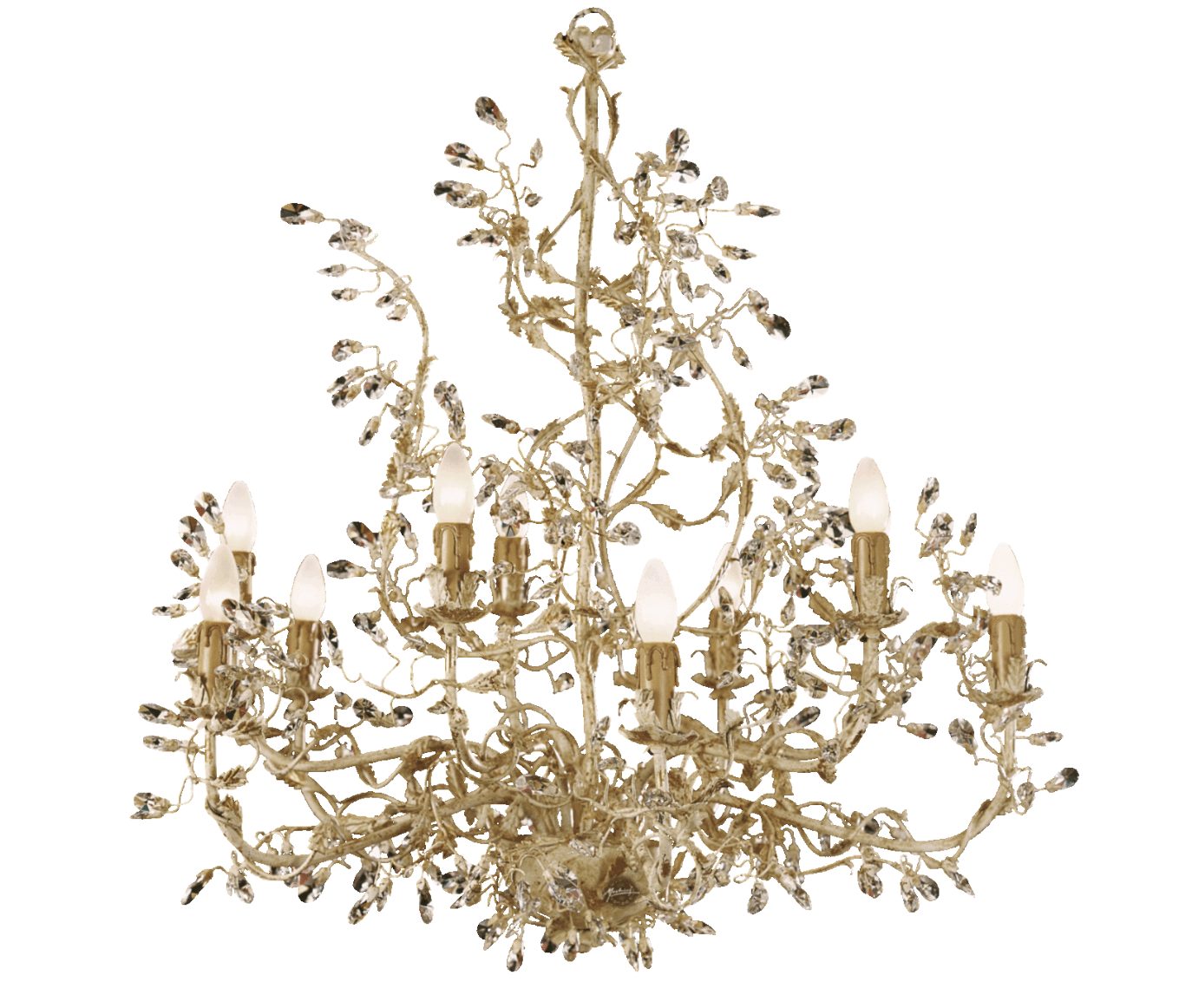 10 lights chandelier in wrought iron with clear Bohemian crystal white gold