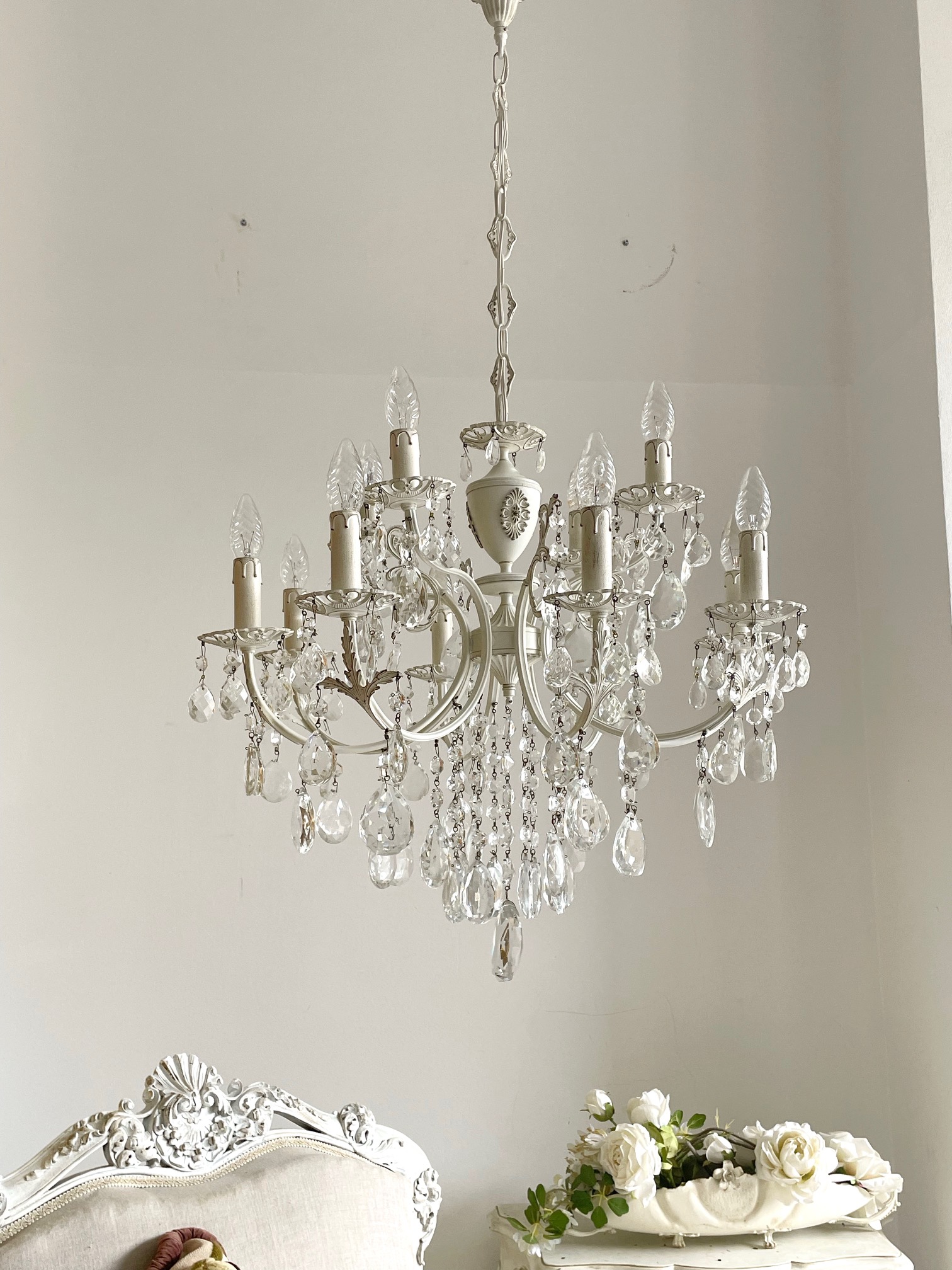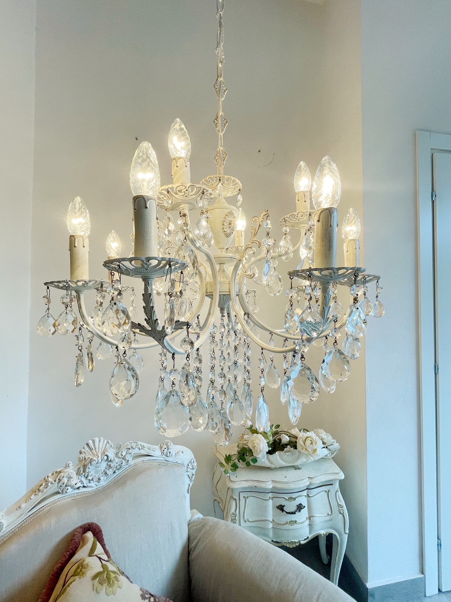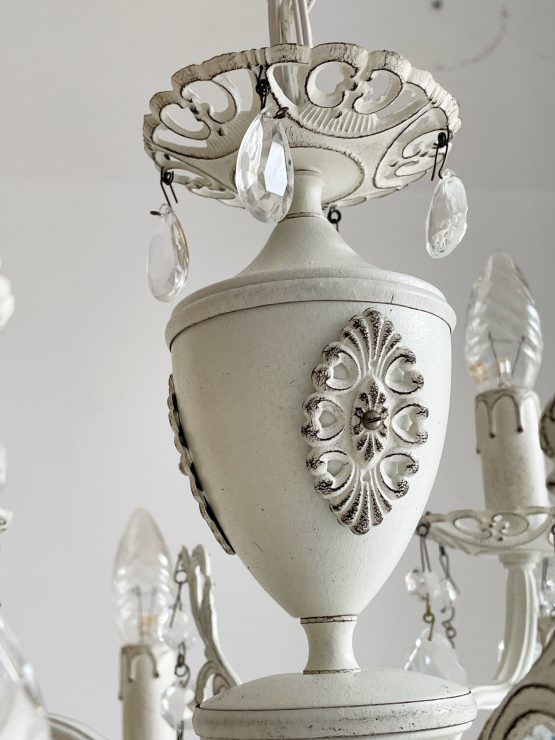 I found this vintage chandelier in a villa in Turin, Northern Italy and I have completely renewed it and repurposed it ivory color with antique patina. It has been fully hand painted and hand decorated.