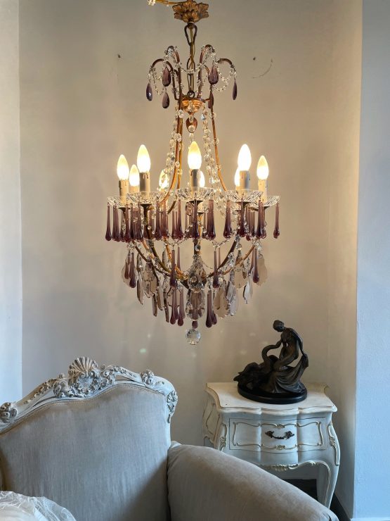 Stunning rare Italian antique 9 lights chandelier, early century chandelier amethyst crystal lighting