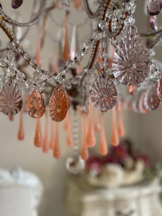 Be the first to review “Antique Italian pink opaline Murano glass drops beaded chandelier”