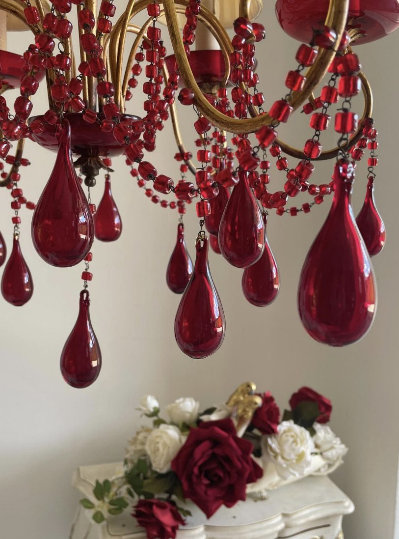 Be the first to review “Antique ruby red Murano blown glass drops chandelier 6 lights, Tre Fuochi style”