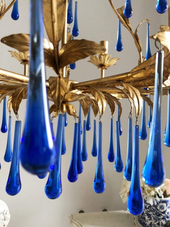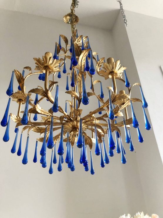 Be the first to review “Blue Murano glass drops gold leaf chandelier 6 lights”
