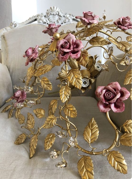 Be the first to review “Italian wrought iron ceiling mount with ceramic roses”