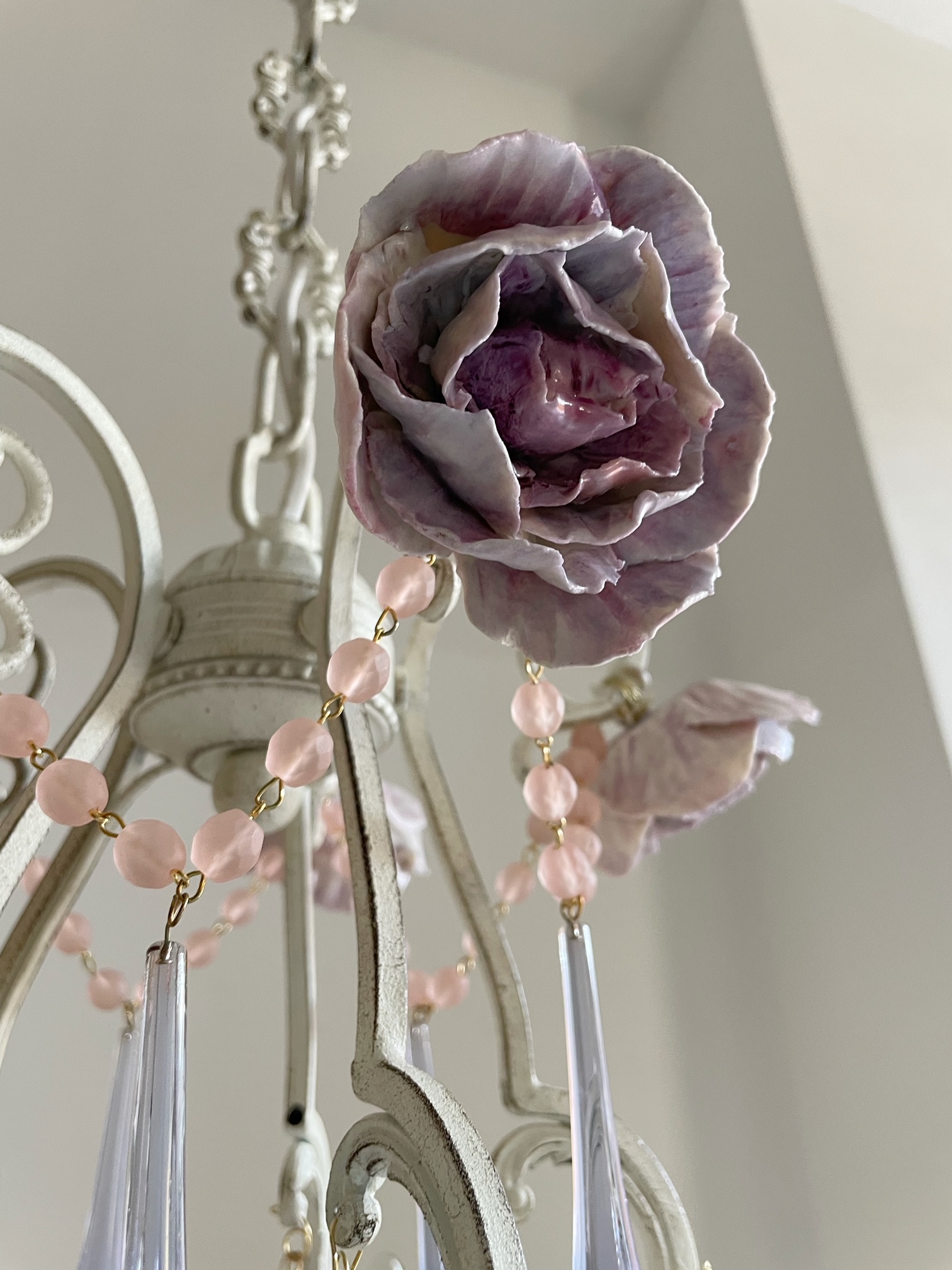 Be the first to review “One-of-a-kind porcelain flowers and opaline drops chandelier”