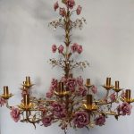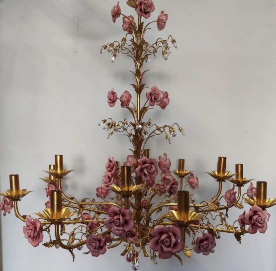 Made in Italy 12 lights handforged wrought iron chandelier in gold leaf.
