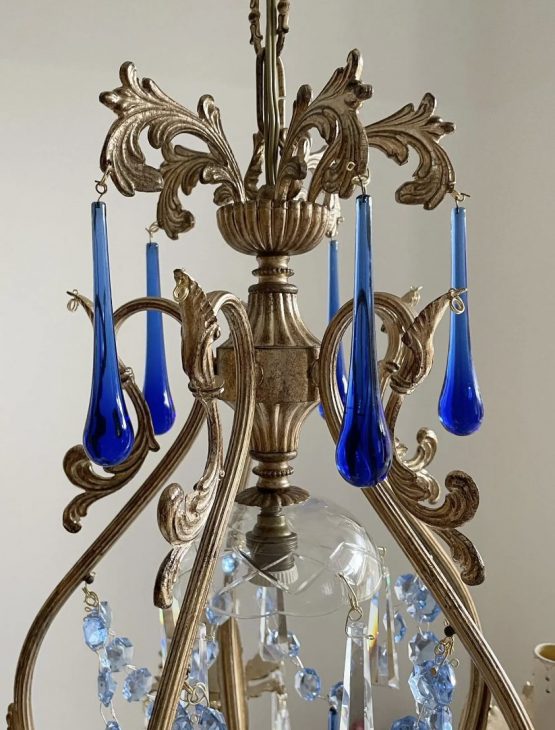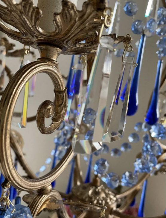 1 review for Reserved for M. Italian ornate brass chandelier with blue Murano glass drops